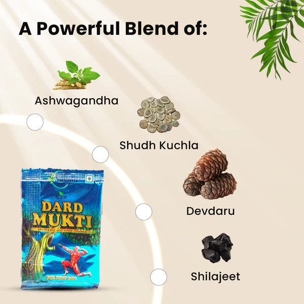 Break free from the chains of pain and rediscover the joy of movement with Dard Mukti! Are constant aches keeping you from the life you deserve? Our powerful solution tackles arthritis, backaches, cervical pain, and more, helping you nurture your joints and bones now for a strong, active future. Why let discomfort call the shots? Reclaim your vitality, say goodbye to swelling, and step confidently into a life without limits. It’s time to make wellness your greatest asset!