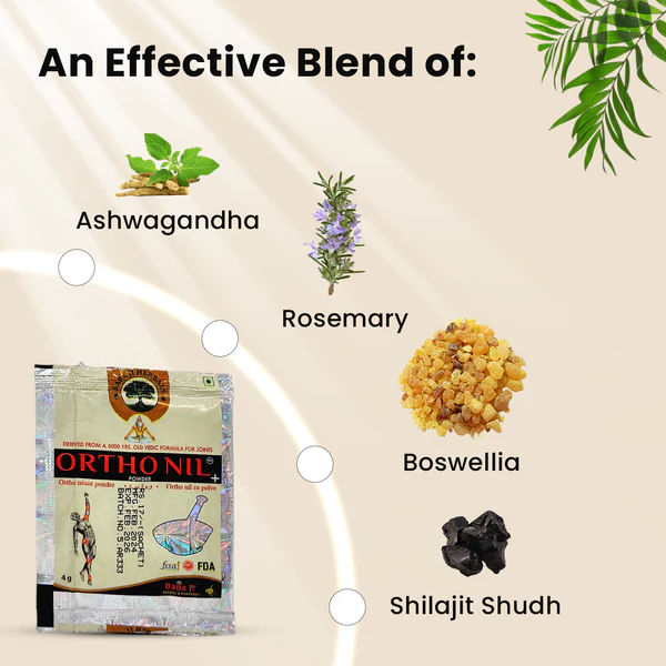 Discover the natural power of Ortho Nil, your ultimate Ayurvedic remedy for joint health! Imagine taking just two pouches a day in lukewarm water and watching the transformation unfold. Say goodbye to joint pain, stiffness, and swelling as you find relief from ailments like arthritis, sciatica, and even trembling hands and feet. Why settle for temporary fixes when nature offers lasting solutions? Embrace a remedy that truly has your back, bringing you the freedom to move with ease!